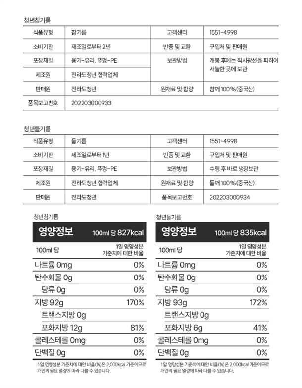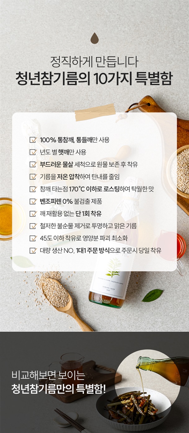 명불허전 믿고 먹는 청년참기름 재구매율 200%!