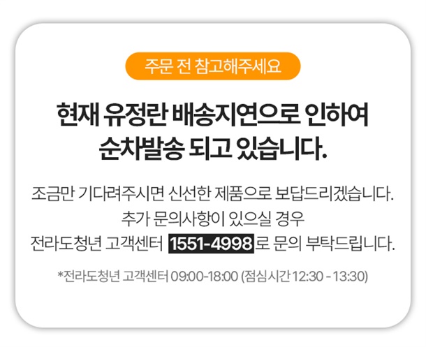 · ※평균 2일 소요 (산지 상황에 따라 배송 일정은 변동될 수 있습니다.)