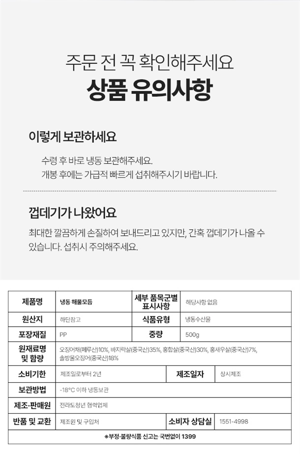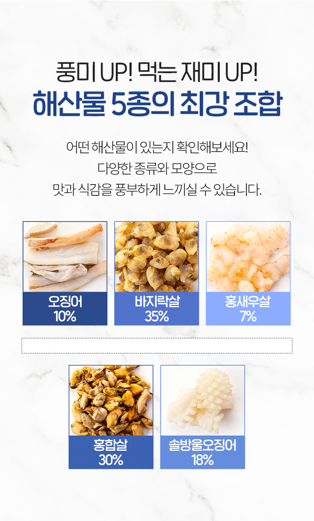 오징어,바지락살,홍합살,홍새우살,솔방울오징어