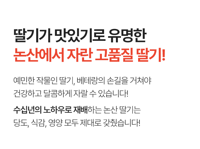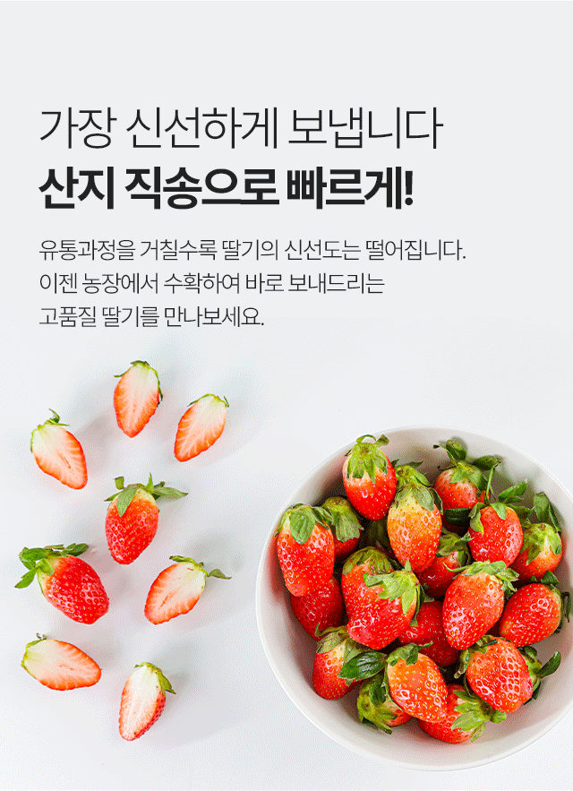 무르지 않고 탱탱해 더욱 맛있는 100% 국내산 딸기