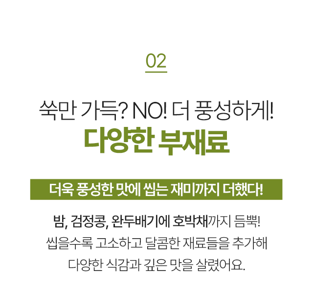 향긋함에 풍성한 고급부재료를 더해 씹는 재미까지