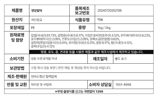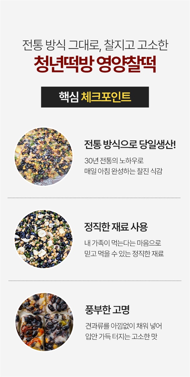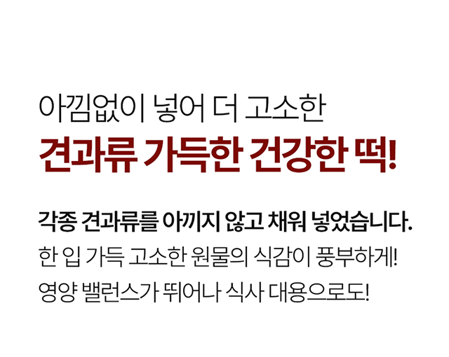 각종 견과류를 듬뿍 넣어 더 든든하고 건강한 떡!