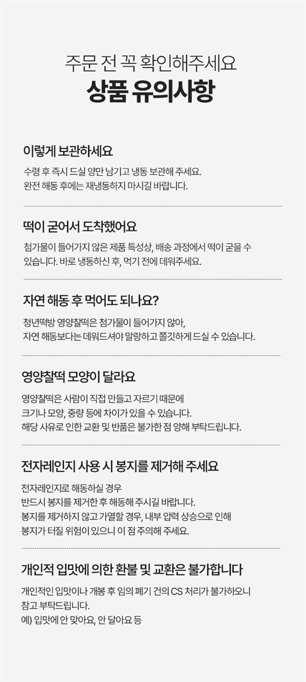 · 상품 불량 사유와 사진을 남겨 주시면 빠른 처리가 가능합니다.