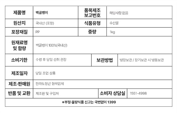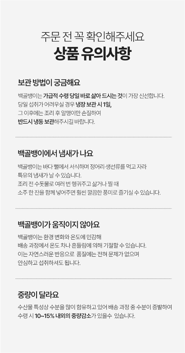 당일 조업으로 비린맛은 줄이고 신선함은 높인 백골뱅이