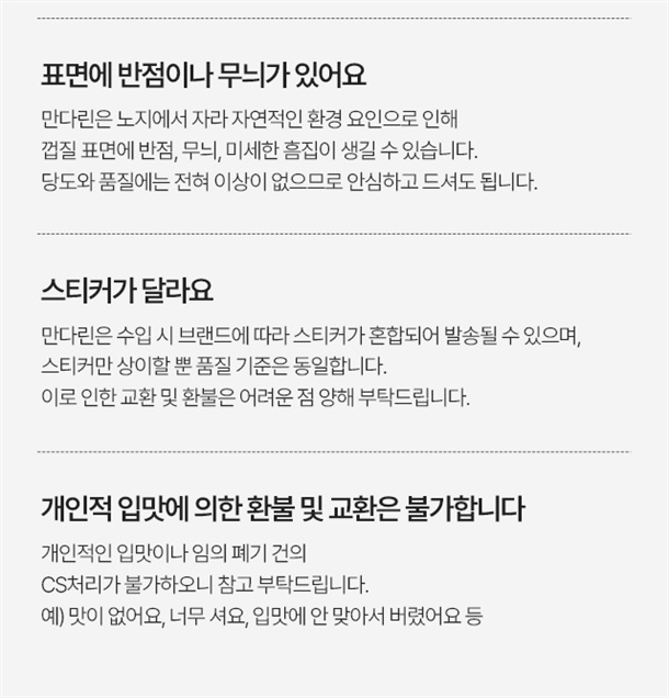 · 상품 불량 사유와 사진을 남겨 주시면 빠른 처리가 가능합니다.
