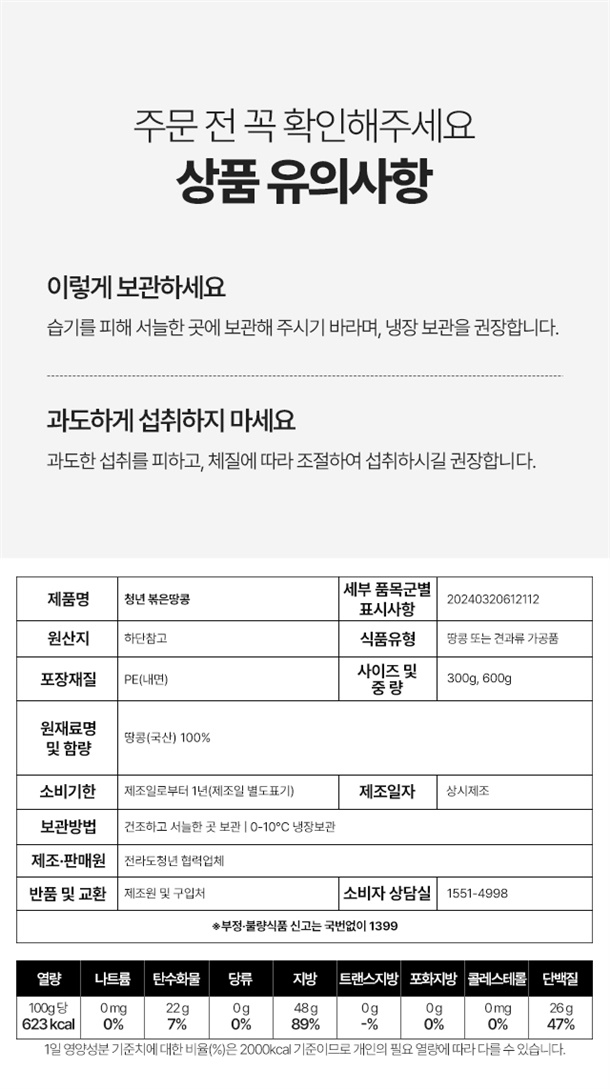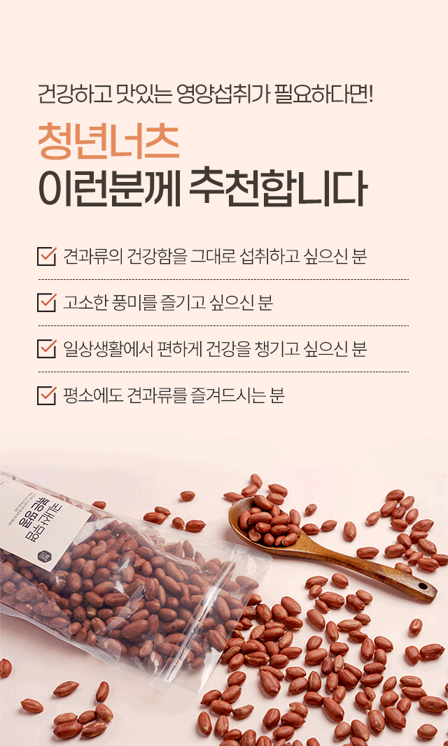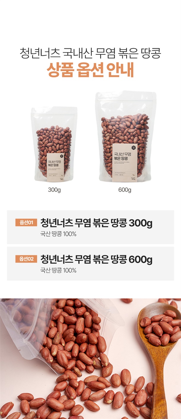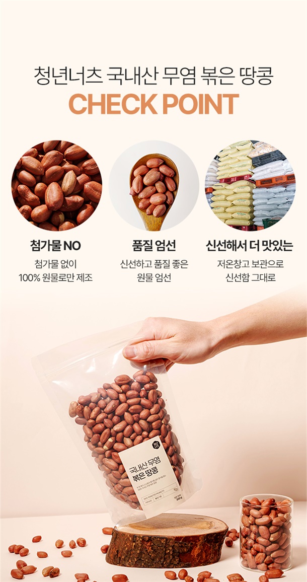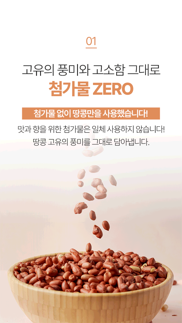 100 % 국내산 땅콩을 첨가물 없이 두번 볶아 고소함 UP!