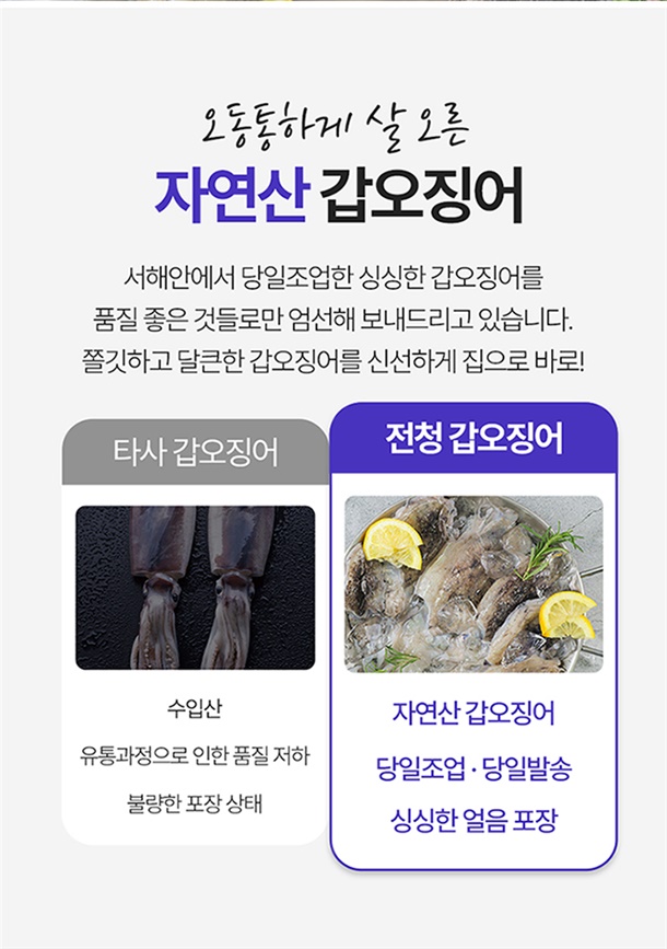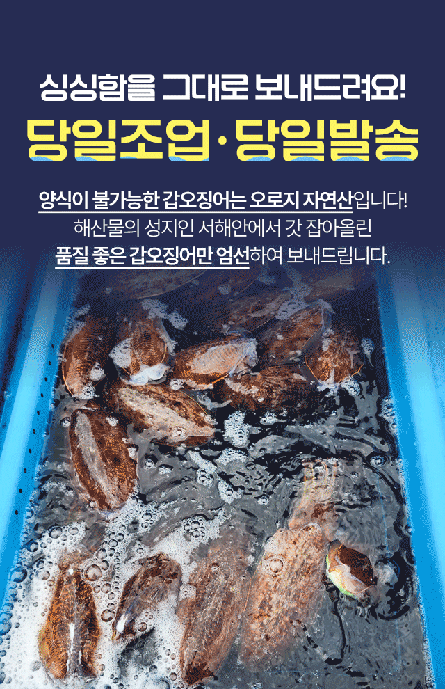 서해안에서 갓 잡아올린 품질 좋은 갑오징어 발송!