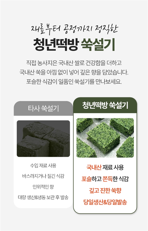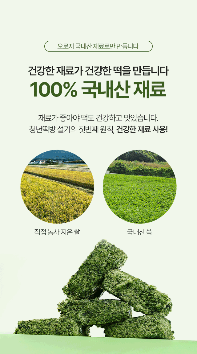 국내산 쑥과 직접 농사지은 쌀로 만들어 더욱 맛있다!