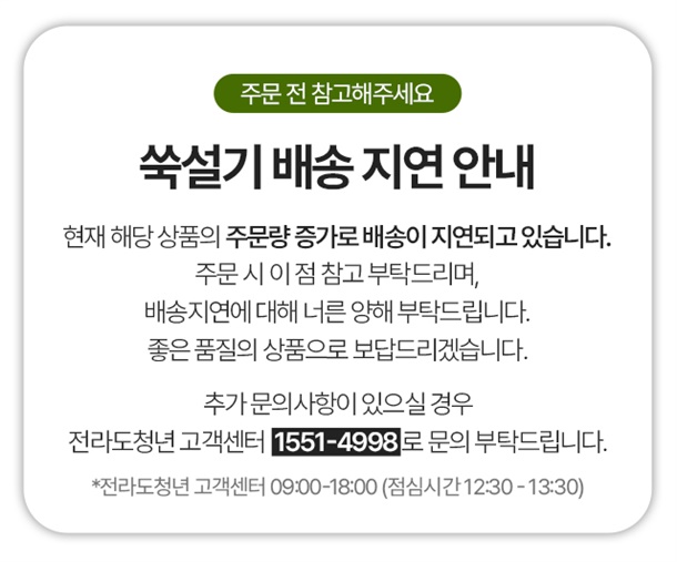 · 예약 발송 상품은 상 품 상세 설명에 안내한 배송관련 정보를 반드시 확인 후 구매해 주세요.