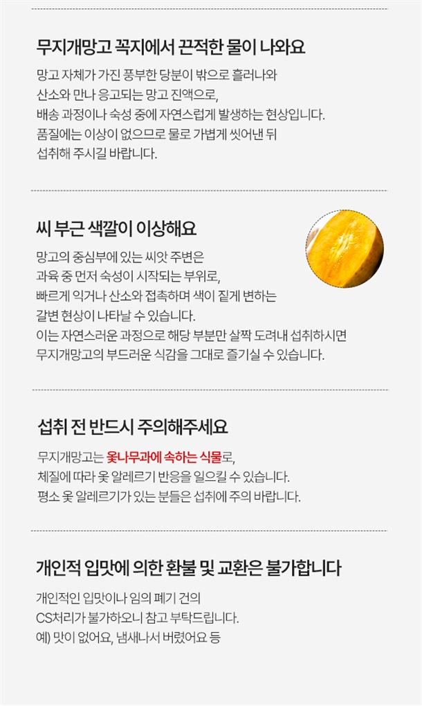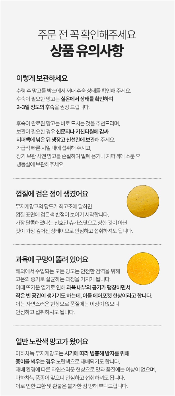 · 교환/반품 신청은 배송완료 후 24시간 이내 접수 가능합니다. 예외) 후숙과일 3일 이내 접수 가능