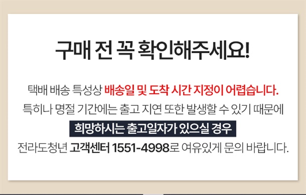 · 상 품은 조기 배송될 수 있으며 배송일 지정은 불가합니다.