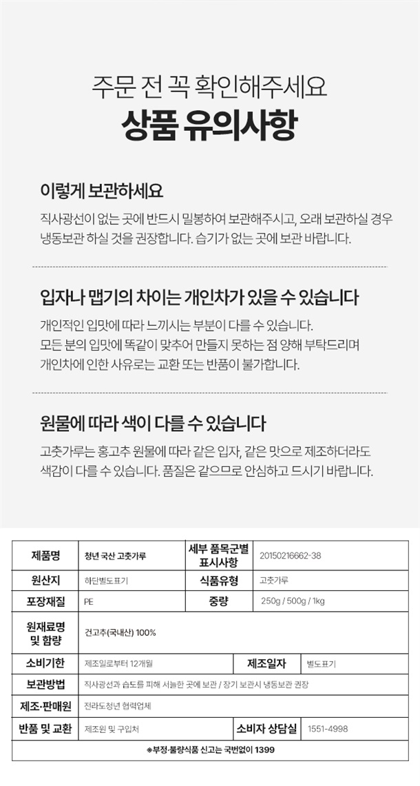 · 상품 불량 사유와 사진을 남겨 주시면 빠른 처리가 가능합니다.