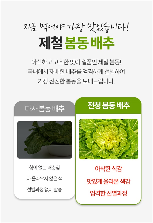 제철 봄동에서만 맛볼 수 있는 풍미를 만끽하세요!