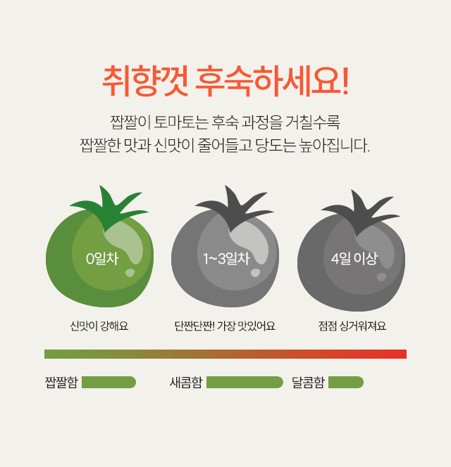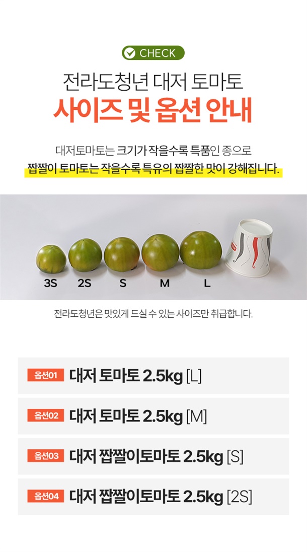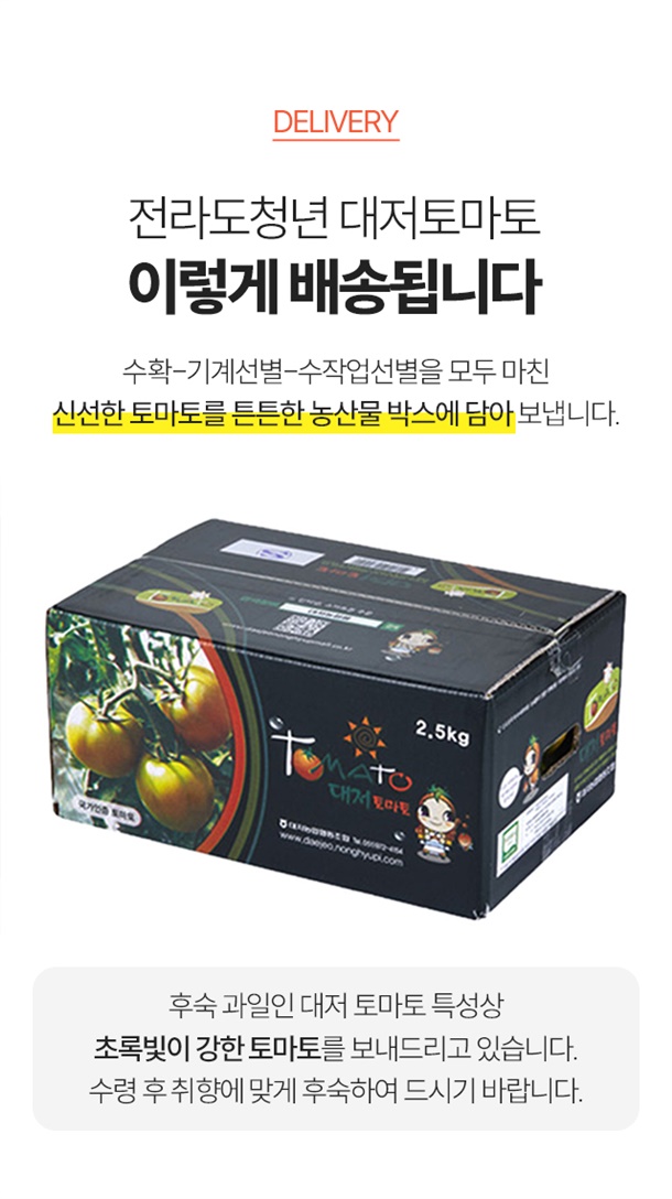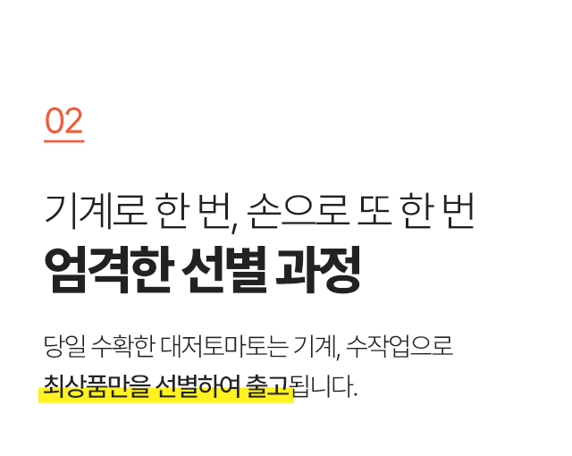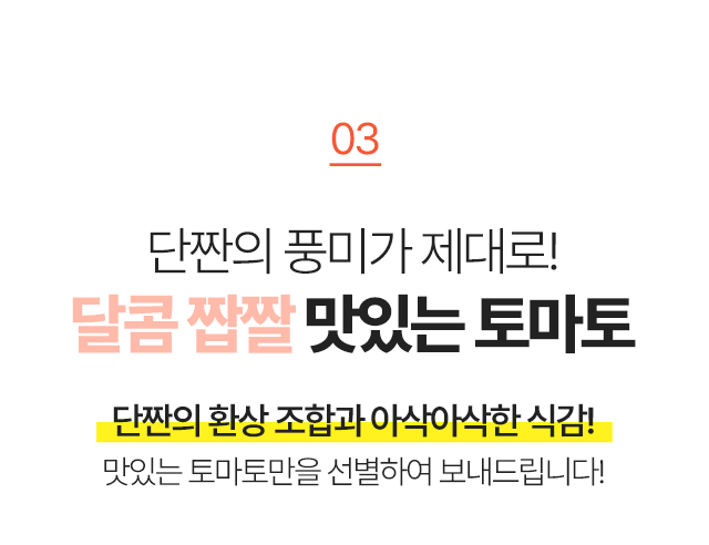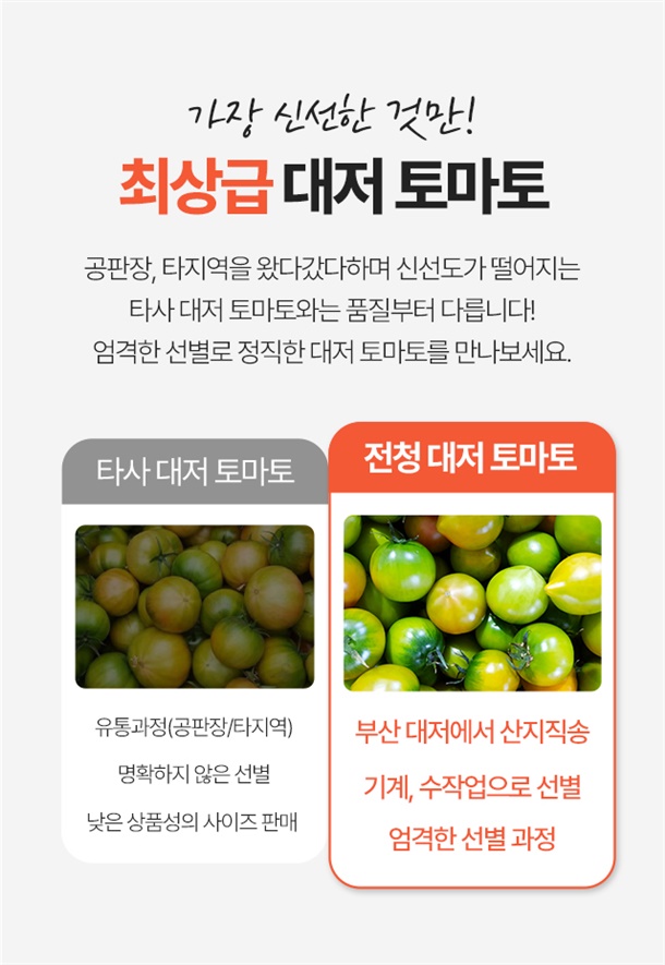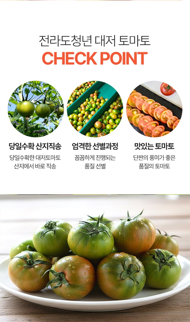 최상품만 선별해서 무르지 않고 아삭한 토마토만!