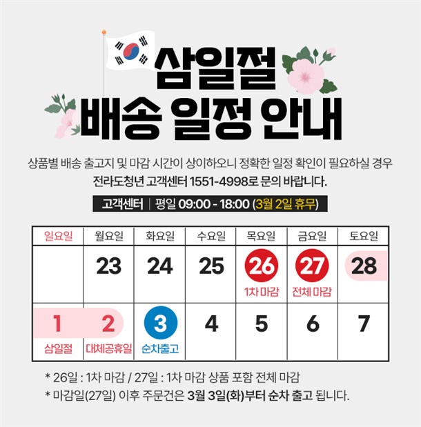 · 예약 발송 상품은 상 품 상세 설명에 안내한 배송관련 정보를 반드시 확인 후 구매해 주세요.