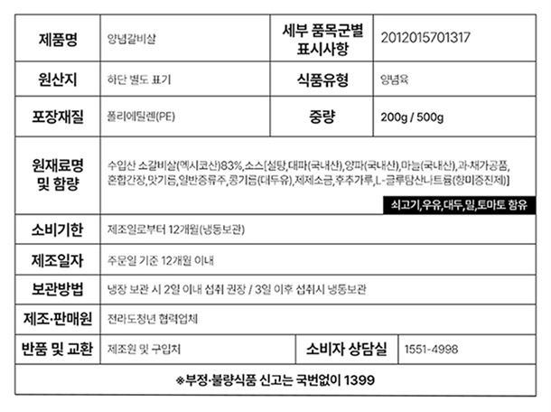 양념갈비살,양념안창살