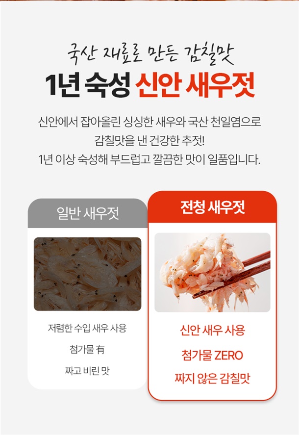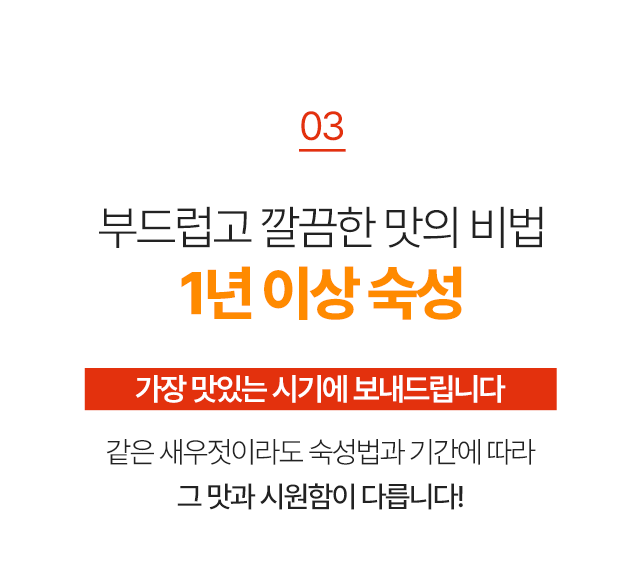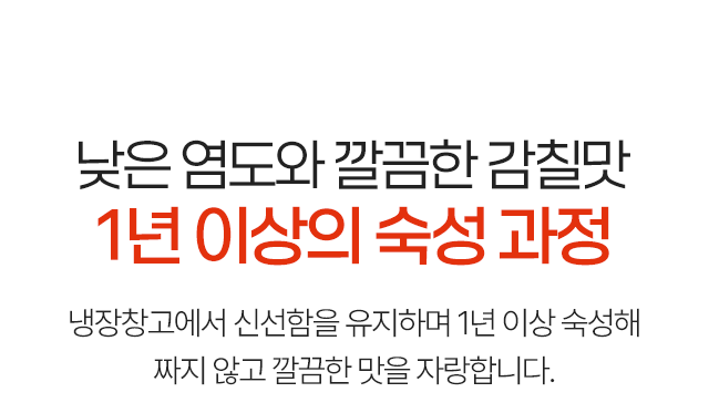1년 이상 숙성해 부드럽고 짜지 않은 감칠맛! 깔끔한 맛이 일품!